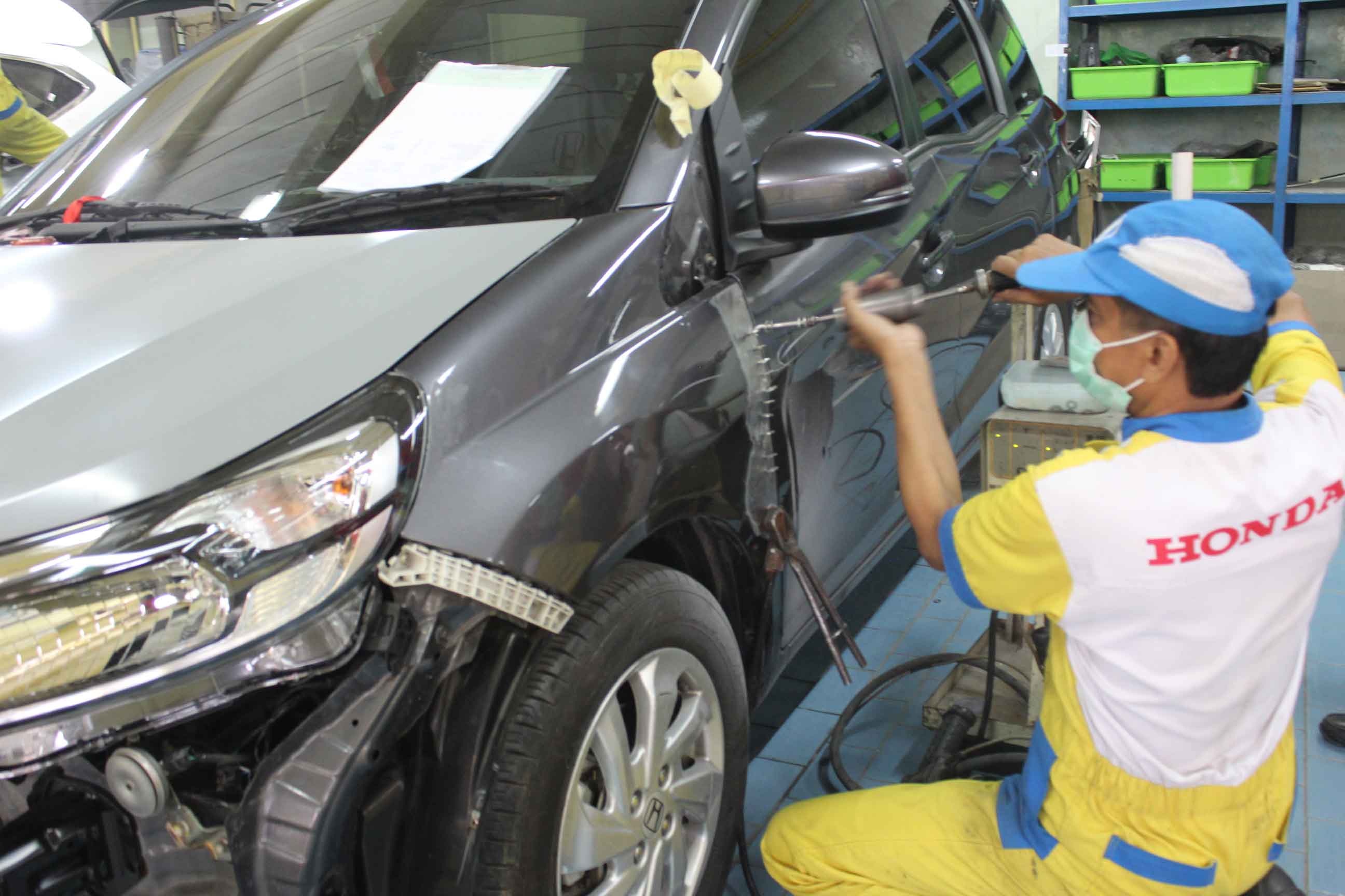 Perbaikan kendaraan pasca tabrakan atau kecelakaan seperti penyok, baret, perbaikan rangka/panel dan pengelasan. Terdiri dari proses Pembongkaran (Diassembly) dan Pengetokan (Beating)